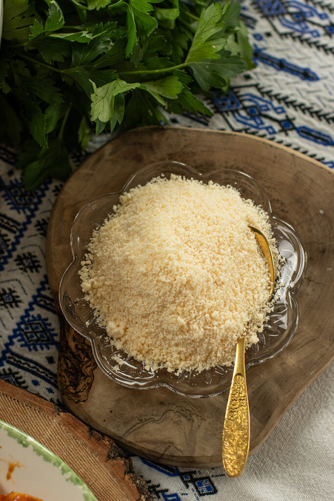 - Finish with chopped parsley and grated kefalograviera or Parmesan. Add crumbled feta on top if desired.