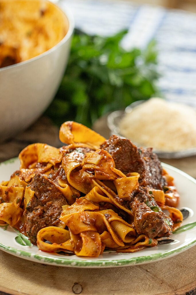 Greek Beef Stew with Egg Noodles Moschari Kokkinisto me Hilopites (with Pappardelle)