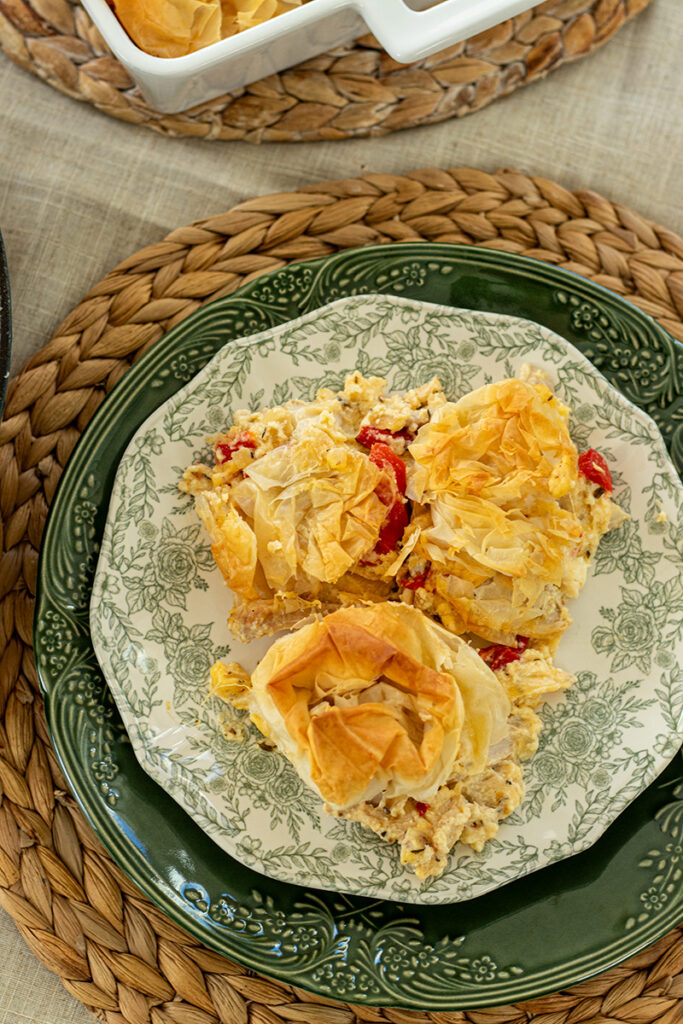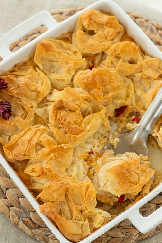 Add spinach, artichokes, or sun-dried tomatoes for extra Mediterranean flavor. Or you can sprinkle sesame seeds over the ruffled phyllo topping before baking for a more traditional Greek touch.