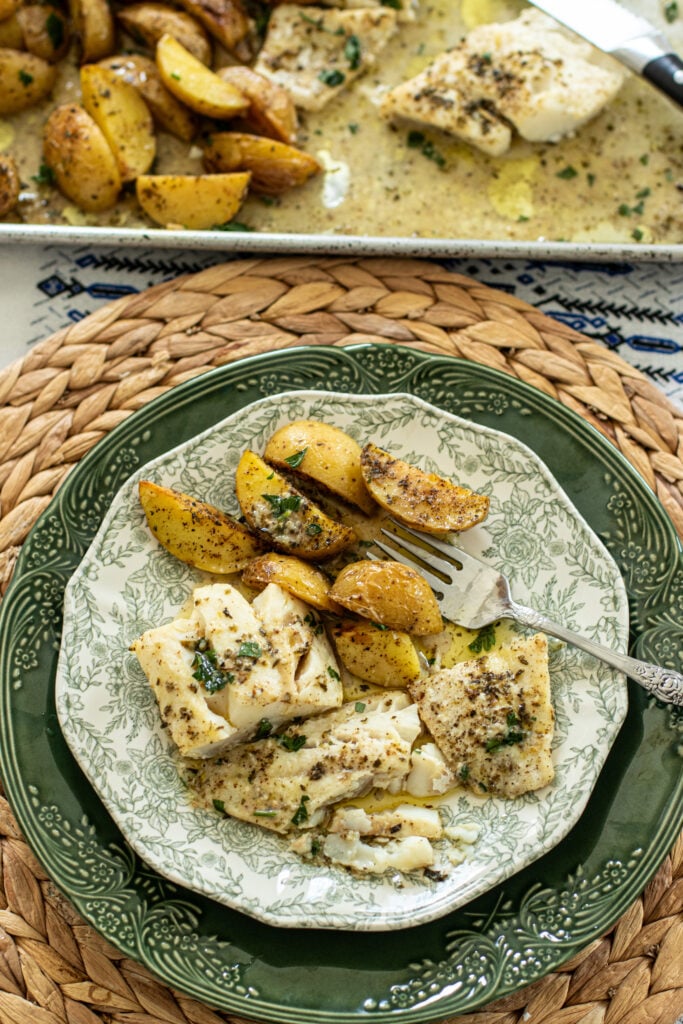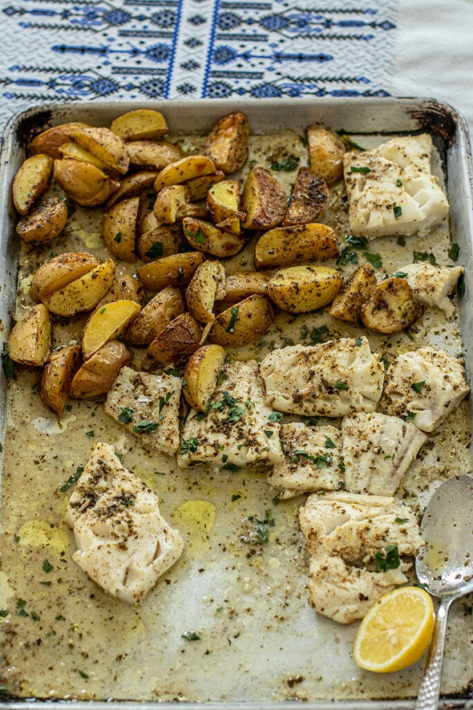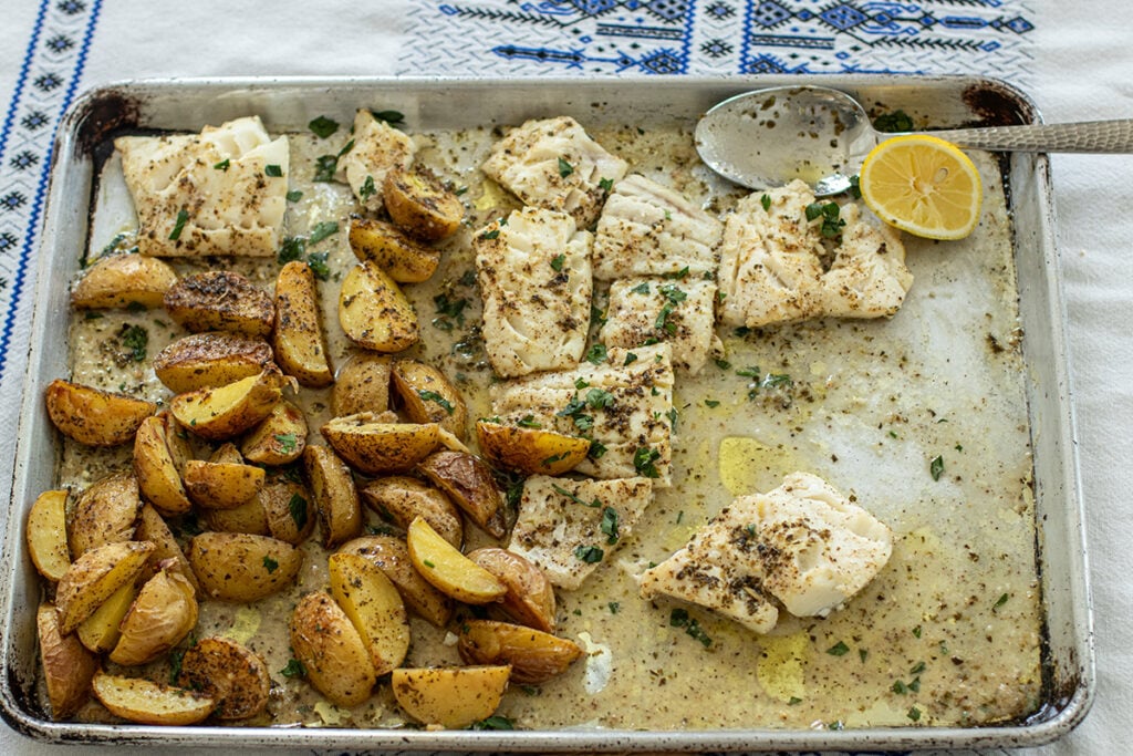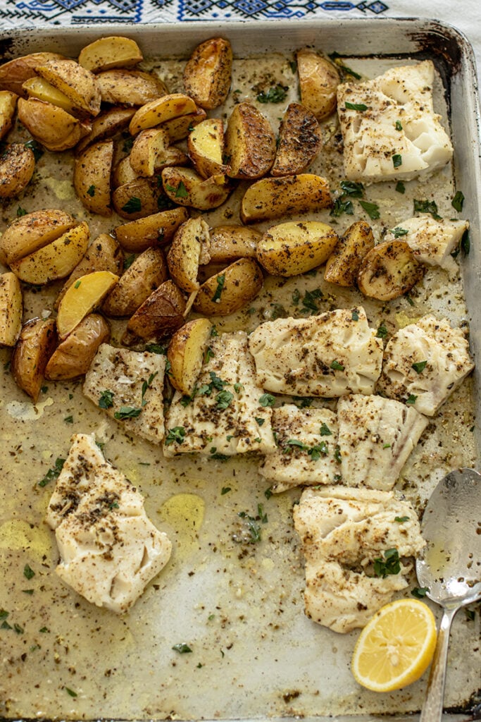Greek Lemony Cod and Potatoes Sheet Pan Dinner