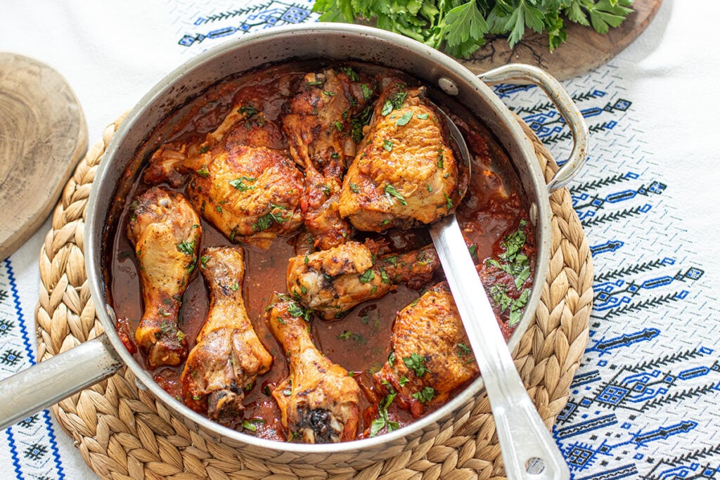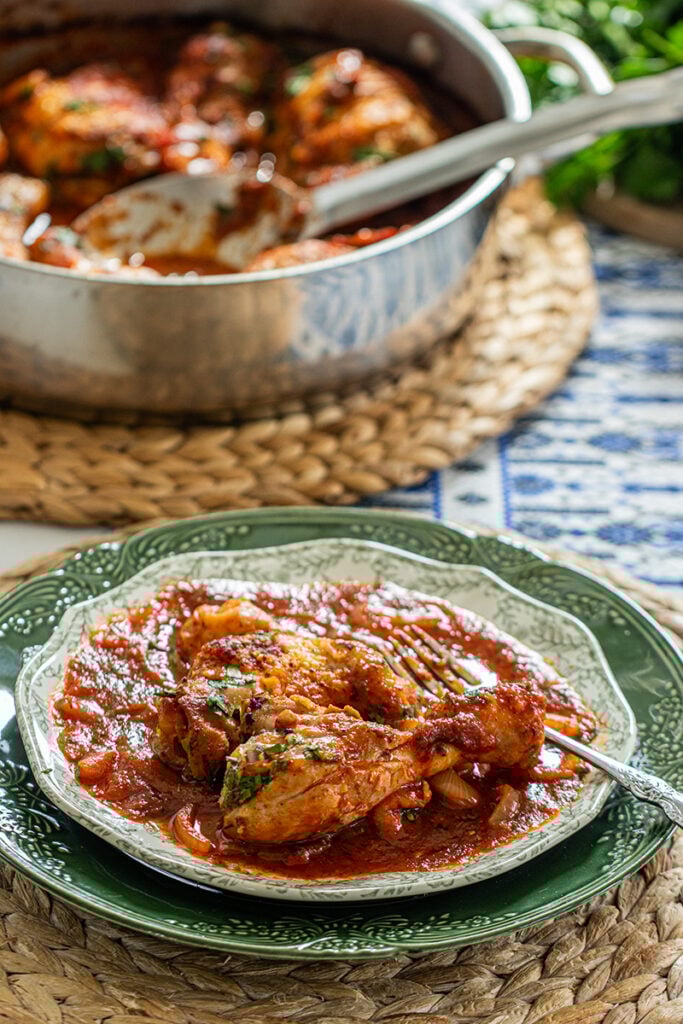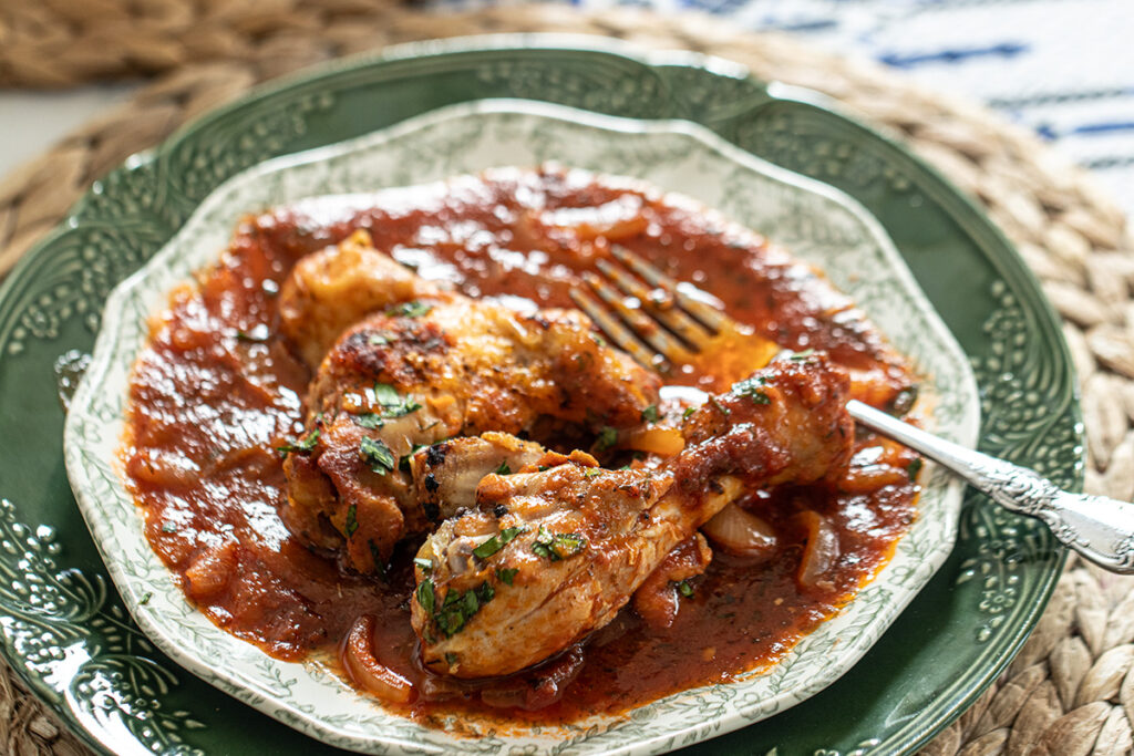 This dish is ideal for effortless entertaining. You can prepare the tomato and onion sauce ahead of time and refrigerate it, then simply nestle the chicken into the sauce and bake before guests arrive. As it cooks, your kitchen will fill with the most inviting Mediterranean aromas — one of the simplest ways to make your home feel warm and welcoming.
