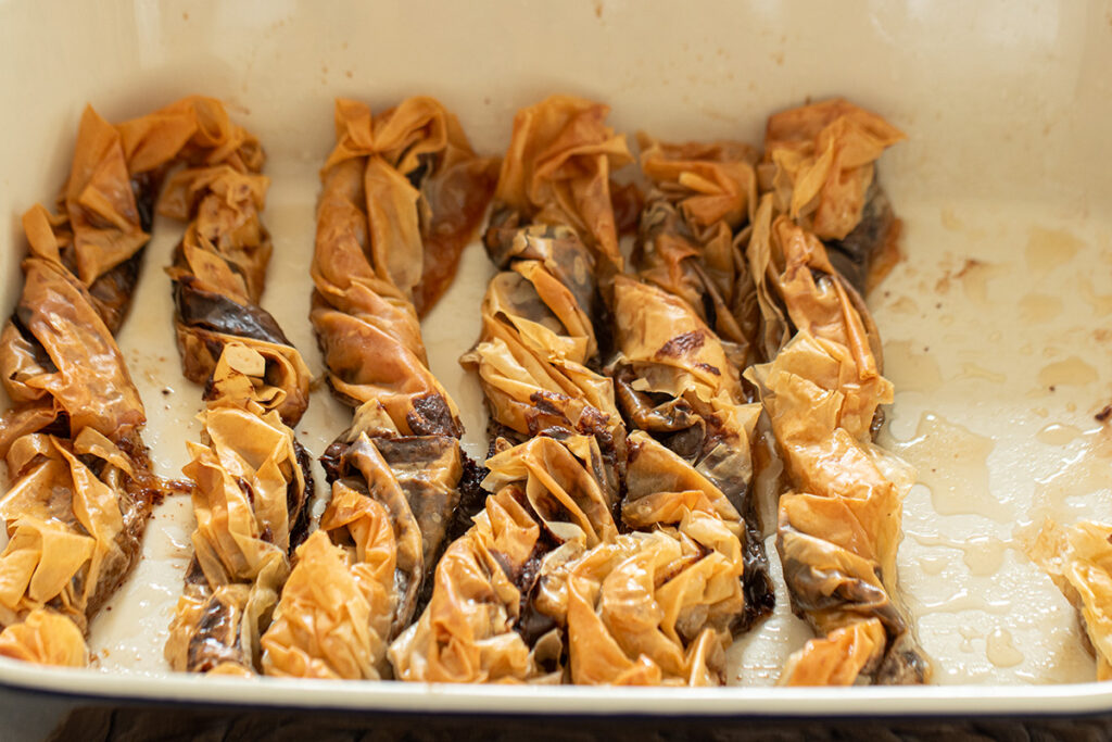 Tahinopitakia: Sweet tahini Phyllo Rolls