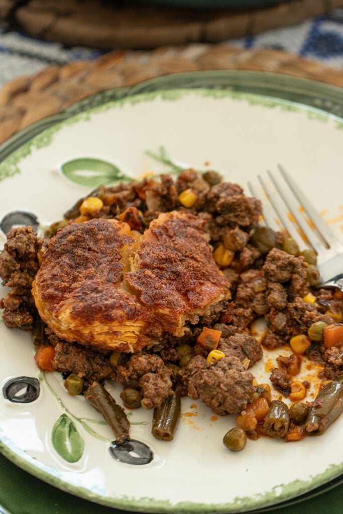 Skillet Ground Beef Pie with Flaky Puff Pastry